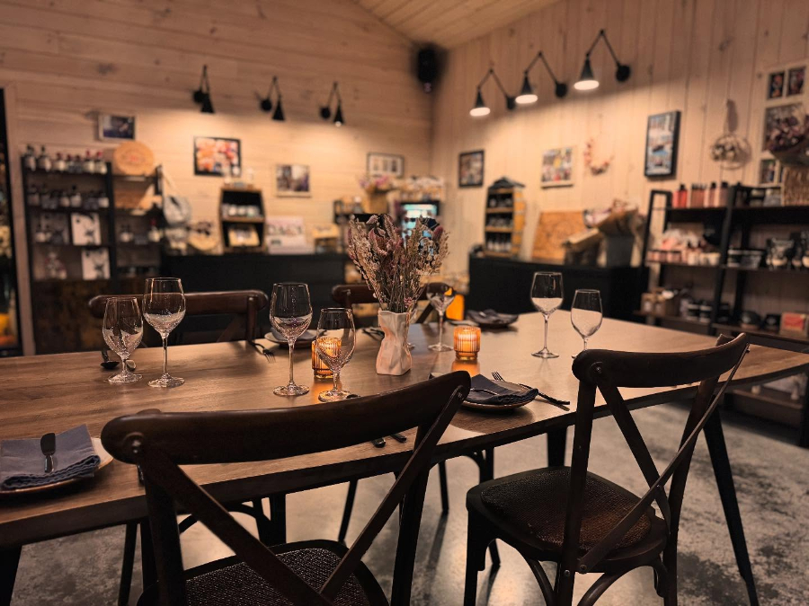 Fondée en mars 2024 par Jessica Grégoire et Loïc Leperlier, Huit 100 Vingt se présente d’abord comme une Table champêtre où l’on vient manger ce qui est produit sur place. «Amoureux de la gastronomie et du local, nous produisons la grande majorité de ce que l’on sert», résume Jessica. Ouvert de mars à décembre, l’établissement mise sur une expérience en toute intimité : seulement 50 convives peuvent prendre place dans la salle à manger où trône fièrement l’évaporateur des lieux.
